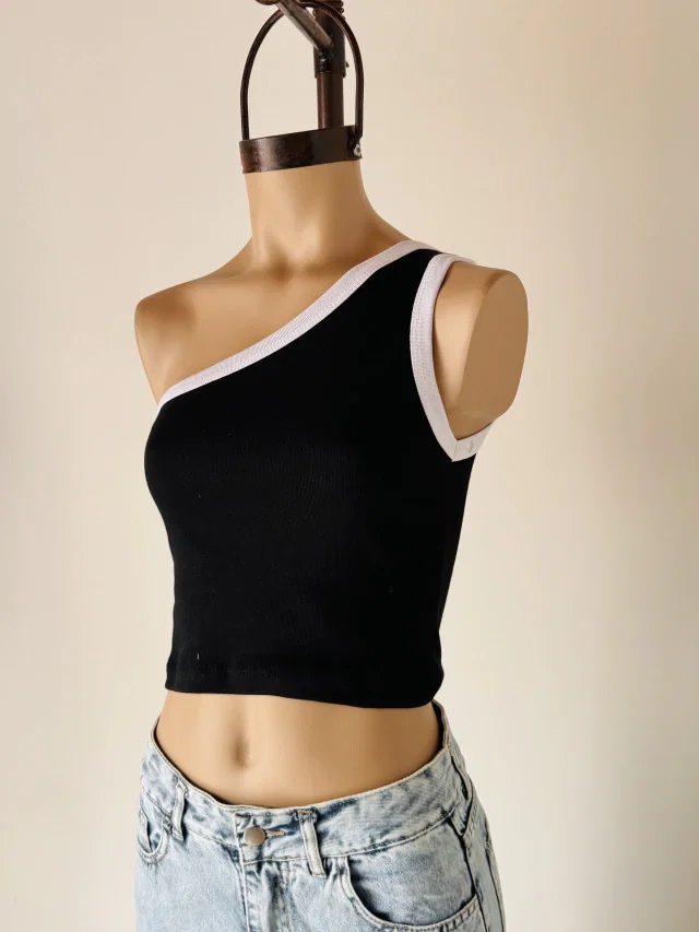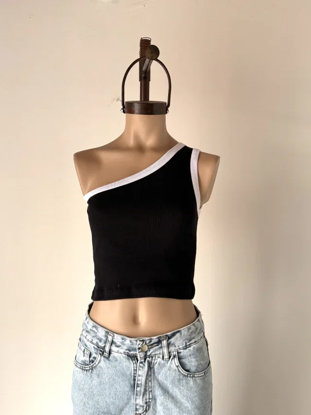 Top Un Hombro Ribb Algodón