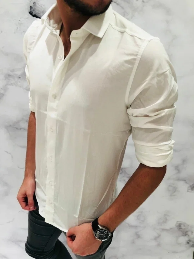 Camisa Lisa Cuello Comun Lino